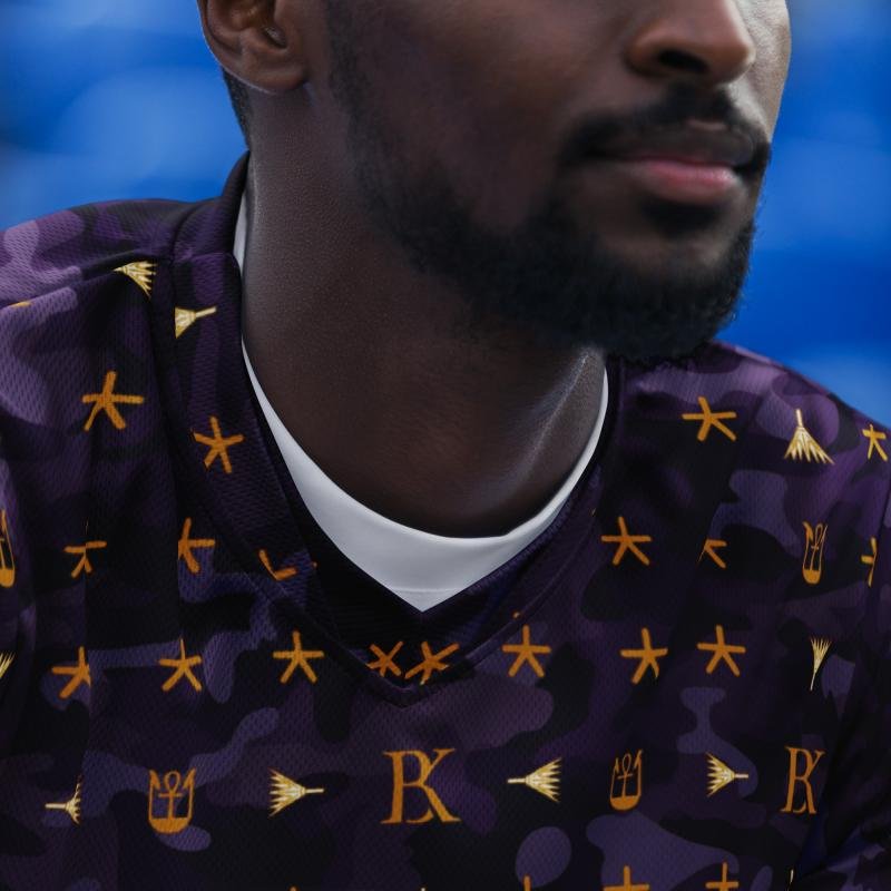 Dark purple camo BRK Metu Print unisex sports jersey with Gold BRK Metu Print