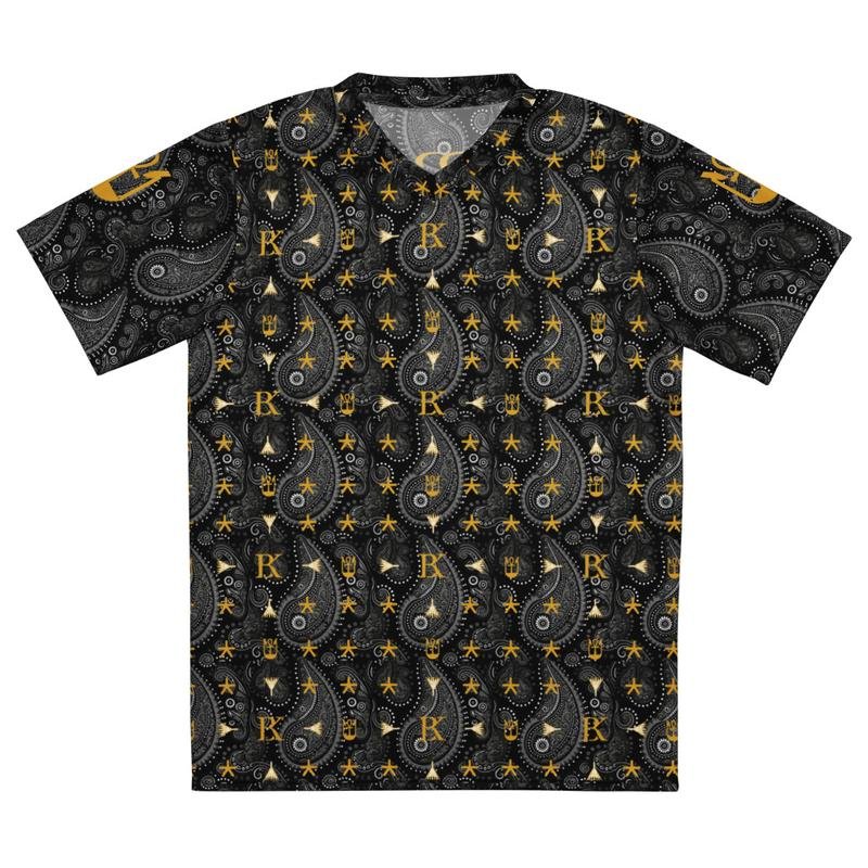 Black Paisley Unisex Sports Jersey with Gold BRK Metu Print