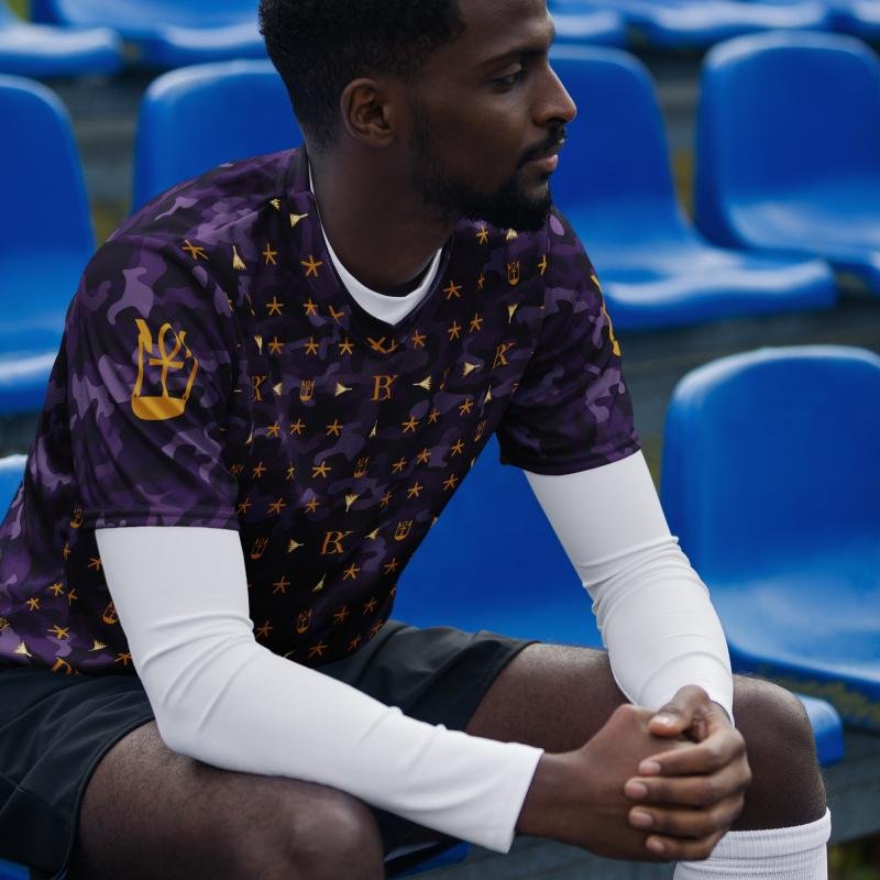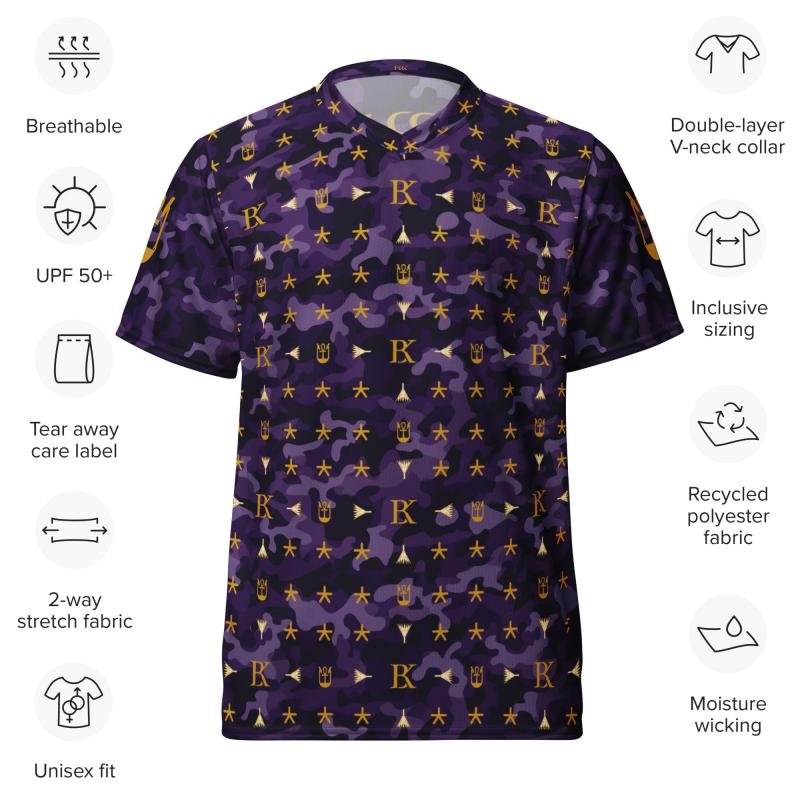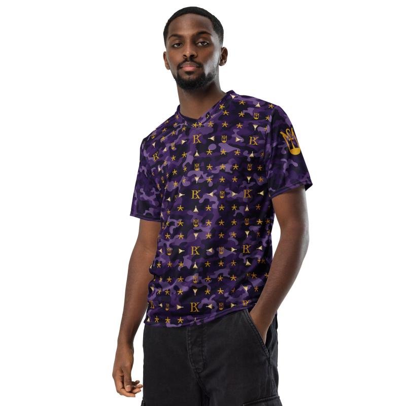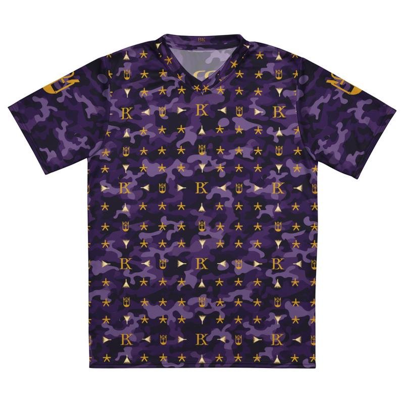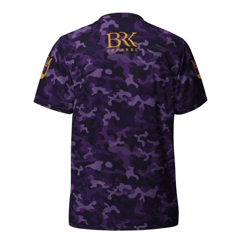 Dark purple camo BRK Metu Print unisex sports jersey with Gold BRK Metu Print