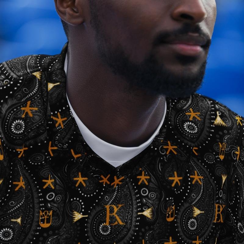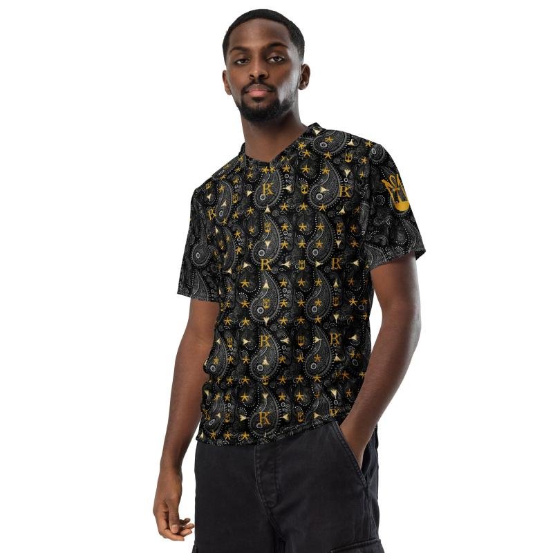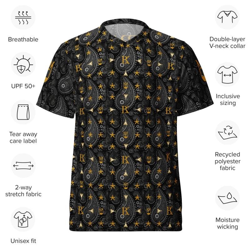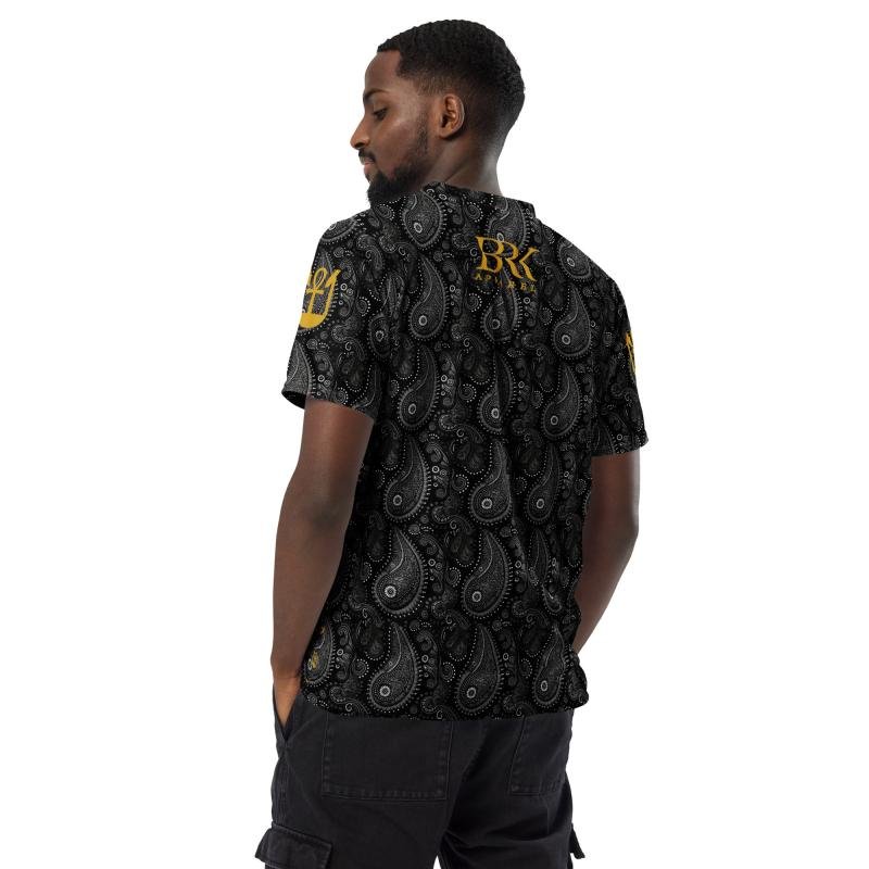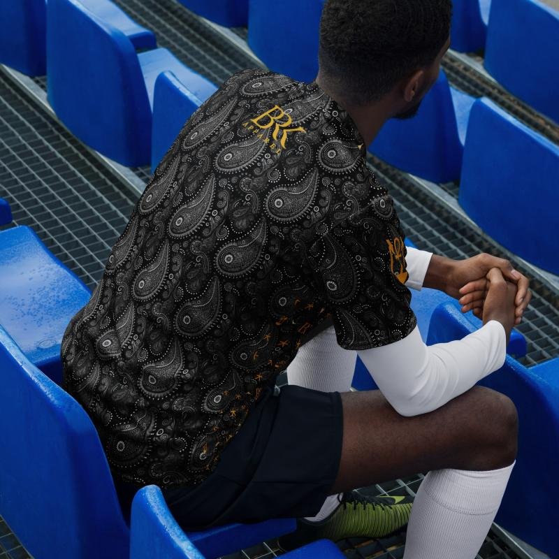 Black Paisley Unisex Sports Jersey with Gold BRK Metu Print