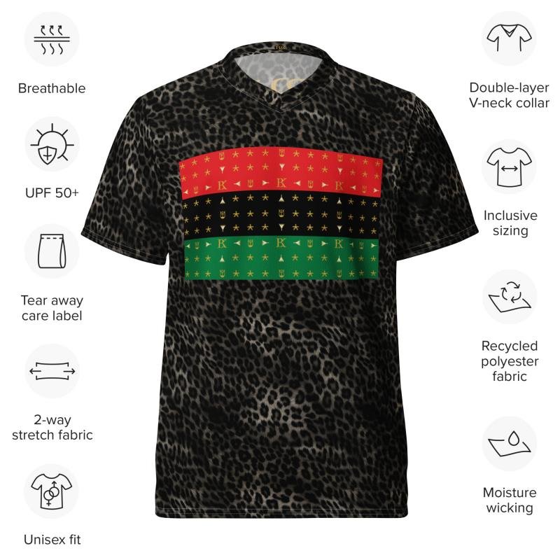 BRK Black Cheetah Fur Jersey with Pan-African Flag & Gold Designer Print