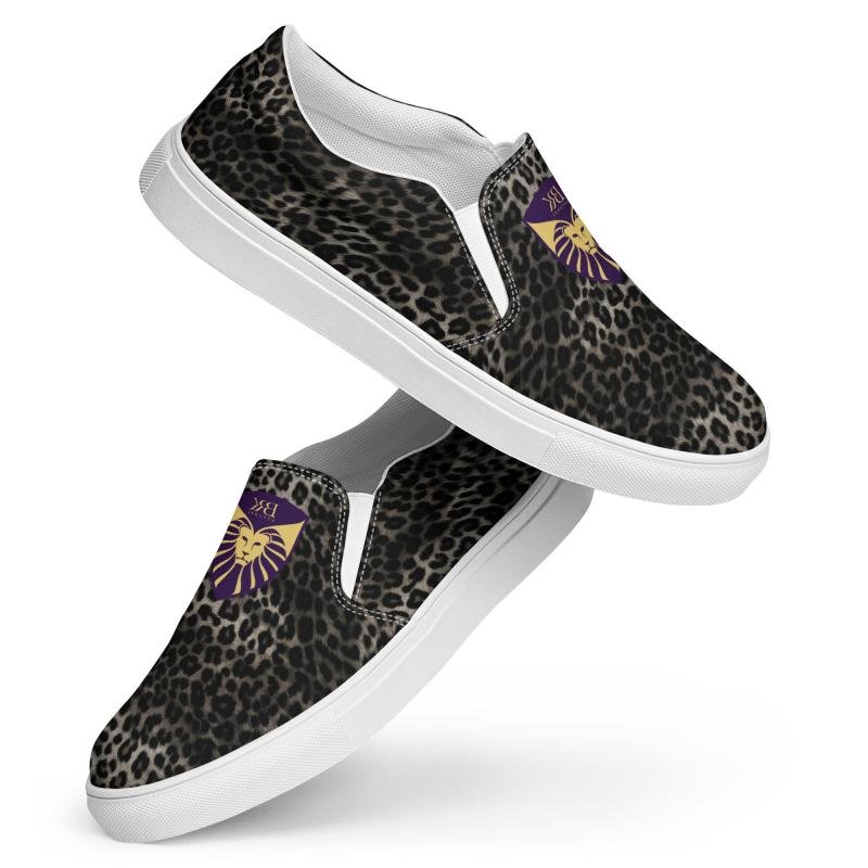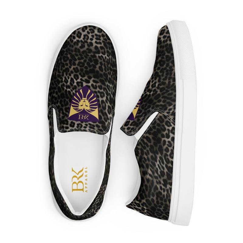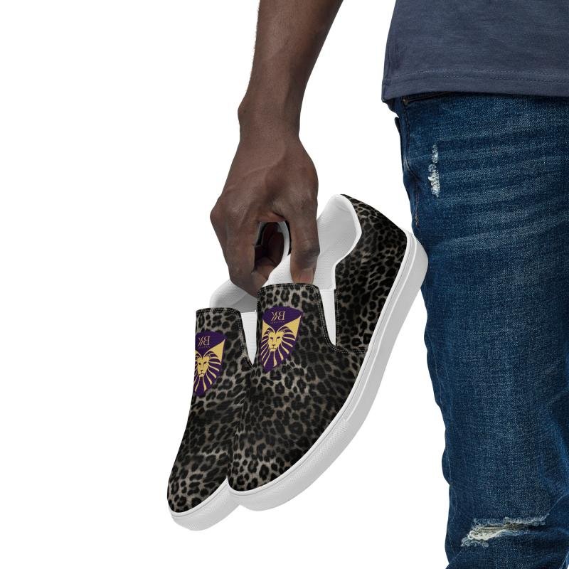 Black Cheetah Fur Print Men’s slip-on canvas shoes